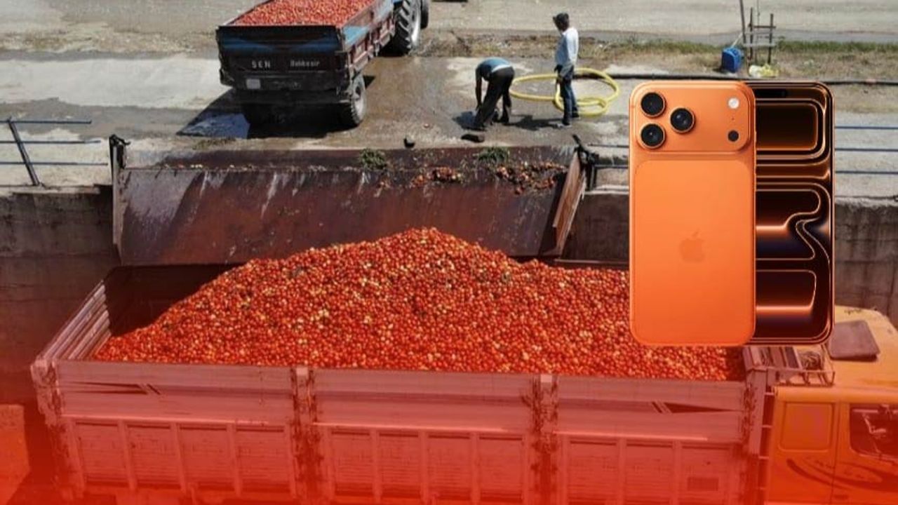 220 bin liralık telefon için salçalık domatesten 55 tona ihtiyaç duyuluyor. Başka bir ifadeyle bir çiftçi, giderlerini hiç karşılamadan hasat ettiği domatesin 24 tonluk bir tır hesabıyla 2 tırdan fazla kısmını gözden çıkarmak zorunda kalıyor.