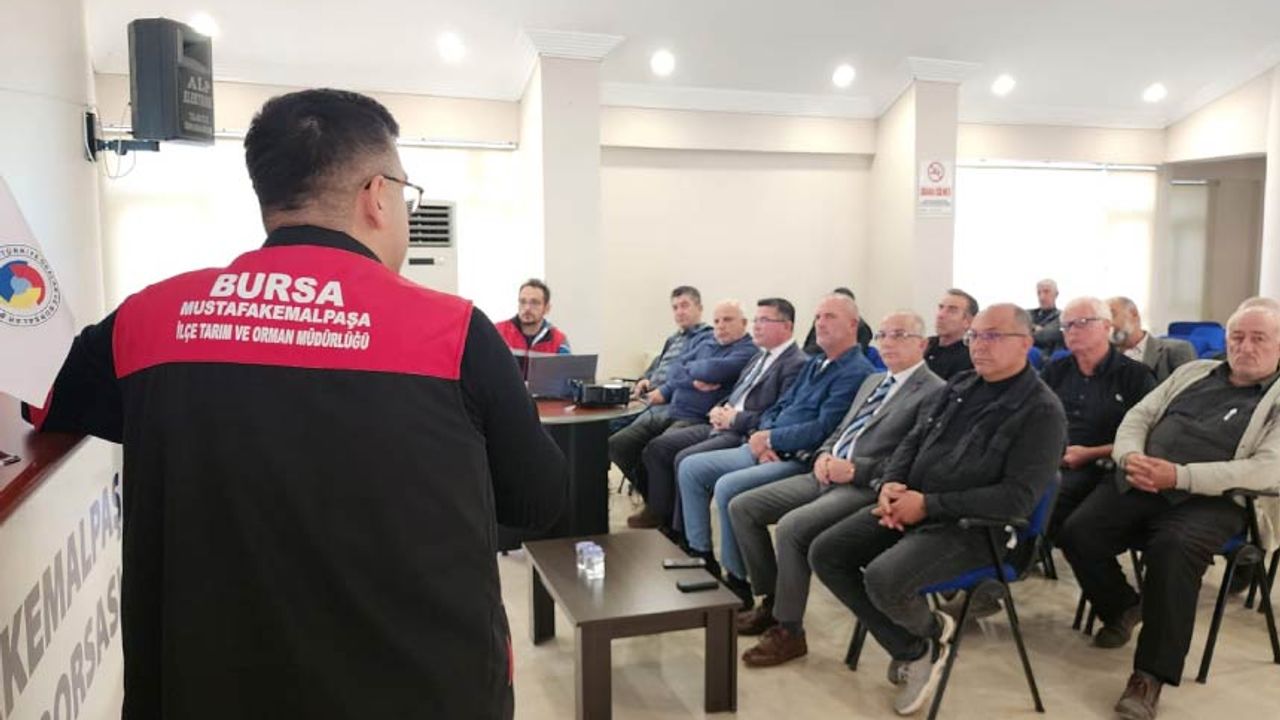 Mustafakemalpaşa İlçe Tarım Müdürü Nuri Oruç ve İlçe Tarım Müdürlüğü’ne bağlı veteriner hekimler tarafından düzenlenen toplantı, Mustafakemalpaşa Ticaret Borsası Toplantı Salonu’nda gerçekleştirildi. Toplantıya Ticaret Borsası Yönetim Kurulu Başkanı Saadettin Akkoyunlu, Ticaret Borsası Meclis Başkanı Mustafa Tokçalar, Ziraat Odası Başkanı Mehmet Aydemir, Muhtarlar Derneği Başkanı Tuncay Akar ve bazı üreticiler katıldı.