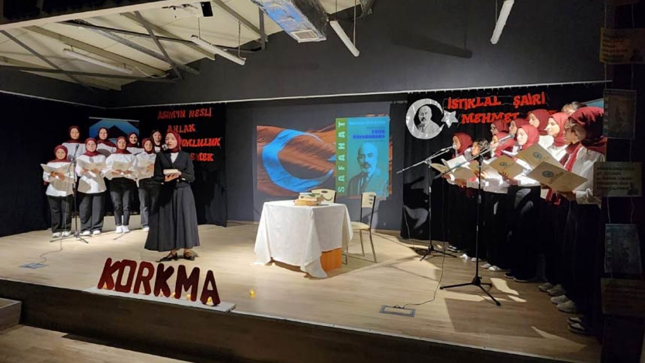 Program, saygı duruşu ve İstiklal Marşı’nın okunmasıyla başladı. Ardından Kız İHL 7/A sınıfı öğrencisi Zümra Batır Kur’an-ı Kerim tilaveti gerçekleştirildi. Günün anlam ve önemini belirten konuşmada Türk Dili ve Edebiyatı öğretmeni Mehmet Arı, İstiklal Şairi Mehmet Akif Ersoy’un hayatı, milli mücadeledeki rolü ve gençliğe bıraktığı manevi miras vurgulandı.