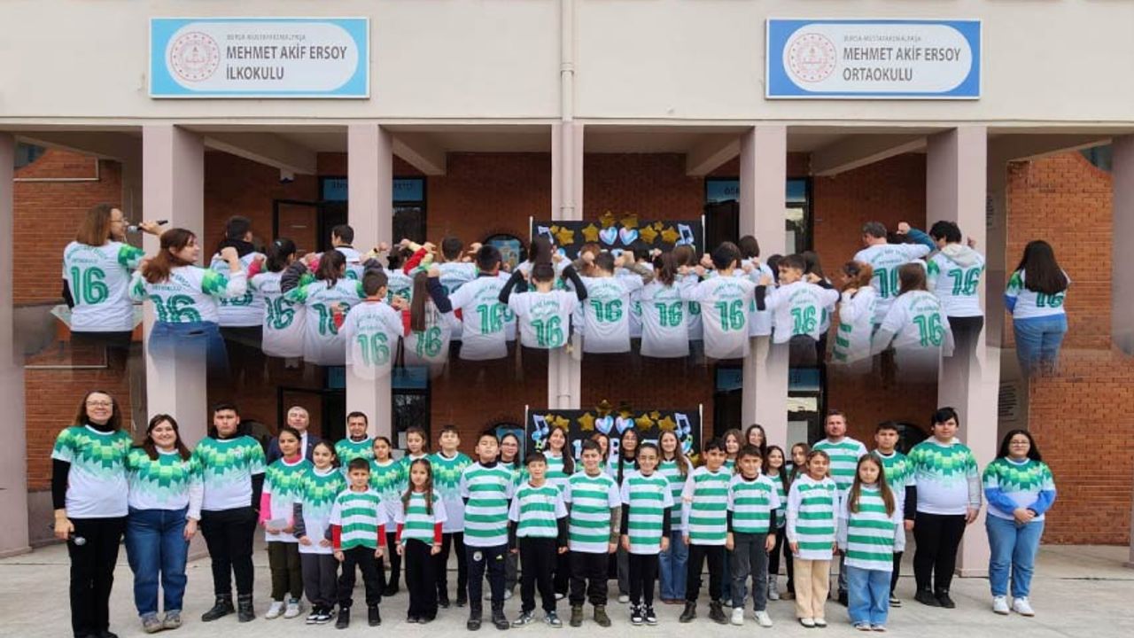 Bursa İl Millî Eğitim Müdürlüğü tarafından her ayın 16’sının “Bursaspor Günü” ilan edilmesiyle birlikte, karne gününün bu özel tarihe denk gelmesi okulda büyük bir coşkuya sahne oldu.