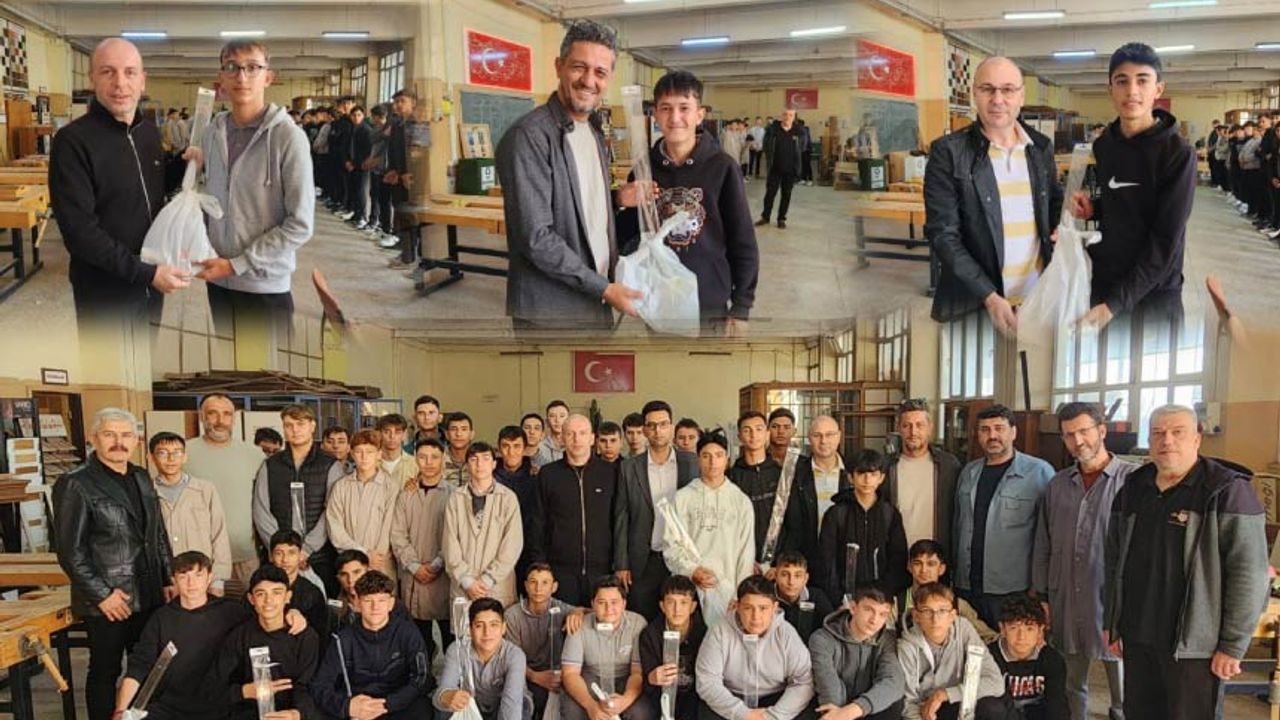 Projeye destek veren Rani Mobilya sahibi Mehmet Çalışkan, Mezza Mobilya sahibi Mehmet Sevi ve Akar Mobilya sahibi Ercan Akar, okul müdürü Mecit Unus’un misafiri olarak bu yıl 9. sınıfa başlayan 26 öğrenci ile bir araya geldi. Okulun mobilya dekorasyon atölyesinde gerçekleştirilen buluşmada öğrencilere kırtasiye malzemeleri hediye edildi.