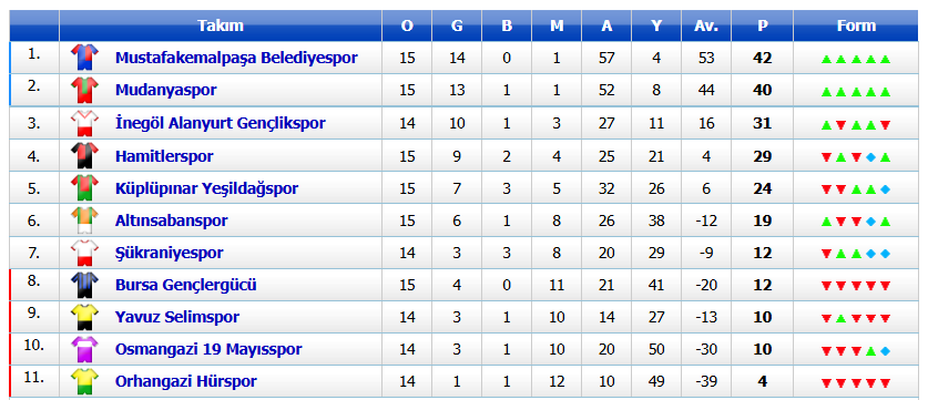 Bu sezon sergilediği üstün performansla dikkat çeken Belediye Mustafakemalpaşaspor, ligde oynadığı 15 maçta 14 galibiyet ve 1 mağlubiyet alarak 42 puanla zirvede yer alıyor. Rakip İnegöl Alanyurt Gençlik Spor ise 31 puanla ligin 3. sırasında bulunuyor.